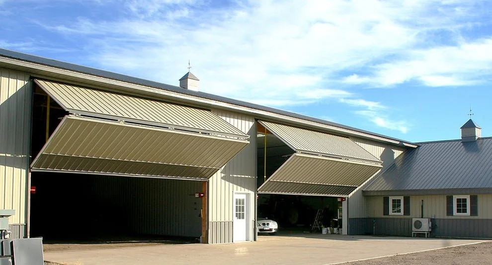 Our bi-fold garage doors are the ideal solution for oversized openings such as aircraft hangars, industrial workshops, or commercial garages. Folding vertically into large panels, these doors allow for maximum clearance and ease of access. Supported by a robust frame and track system, bi-fold doors combine strength with practicality, making them perfect for demanding environments where durability and full access are essential.